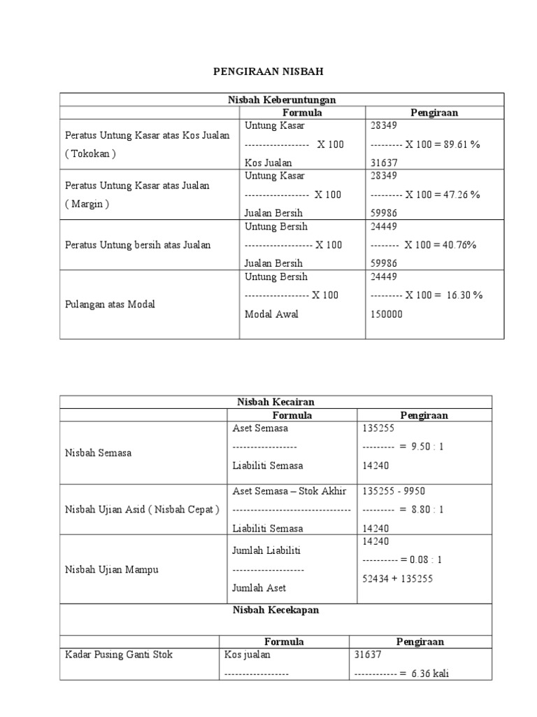 Sudah ada formula tidak perlu isi. Saya tak faham kenapa tak ditolak stok akhir dan hanya tolak pemiutang sedangkan ia ada cakap terlupa dibuat pelarasan. Formula-formula asas Penyata Pendapatan bahagian Akaun Perdagangan Asas Jualan bersih Kos jualan Untung Rugi kasar Dikembangkan Jualan Pul.