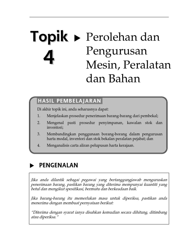 Topik 4 Perolehan Dan Pengurusan Mesin Peralatan Dan Bahan Pdf