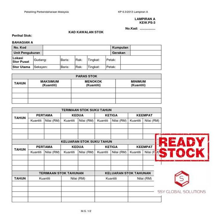 Kad stok kew ps 1. Mencetak Kad Kawalan Stok KEWPS-3 1. Pekeliling Perbendaharaan Malaysia AM 62 MS. Merekod Stok KEWPS4 Kad Petak Daftar Pergerakan PeralatanStok Gunasama KEWPS7 Penentuan Kumpulan Stok berdasarkan penggunaan dua 2 tahun 3.