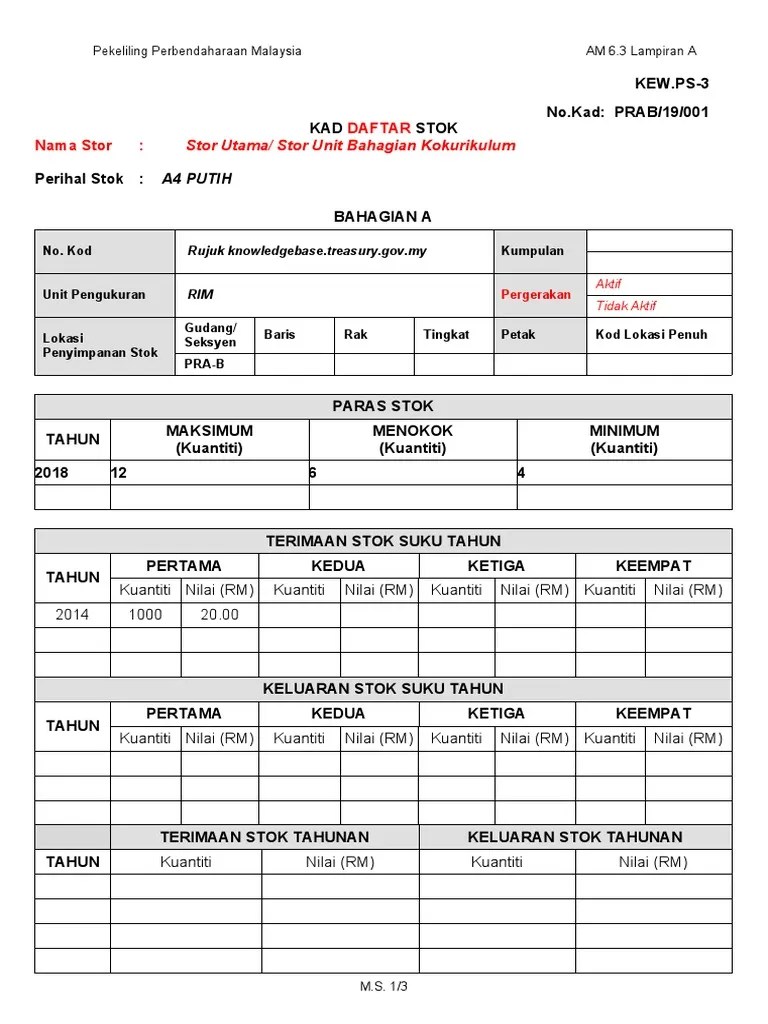 Kew ps 3 daftar stok. Kertas A4 Putih 80 gsm Bahagian A. Jenis bekalan pejabat seperti barabg-barang luar misalnya.
