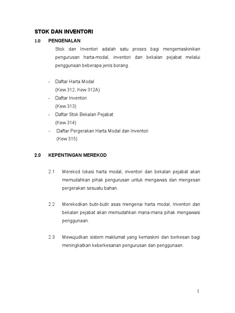 Proses merekod dan mengurus maklumat stok dan inventori di makmal Jabatan Pendidikan Teknik dan Vokasional masih menggunakan kaedah manual. 62 Semua Kad Daftar Stok hendaklah dikemas kini setiap kali transaksi penerimaan dan pengeluaran. Human translations with examples.